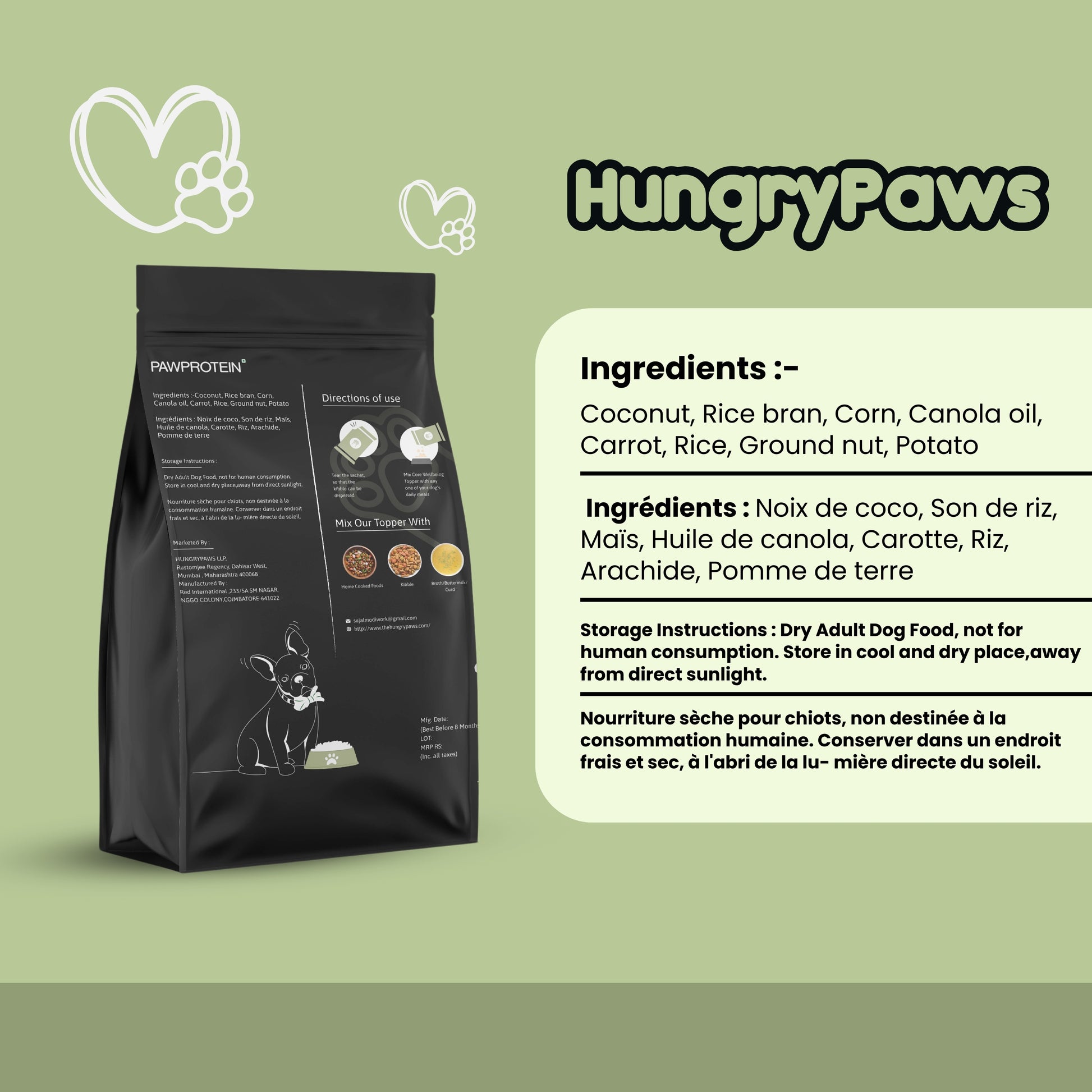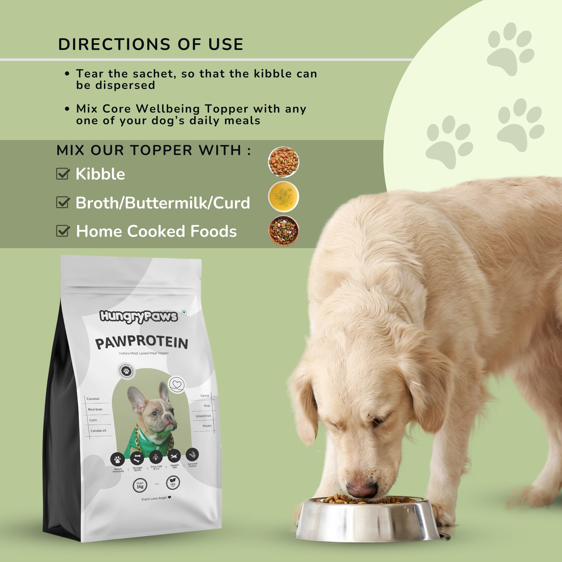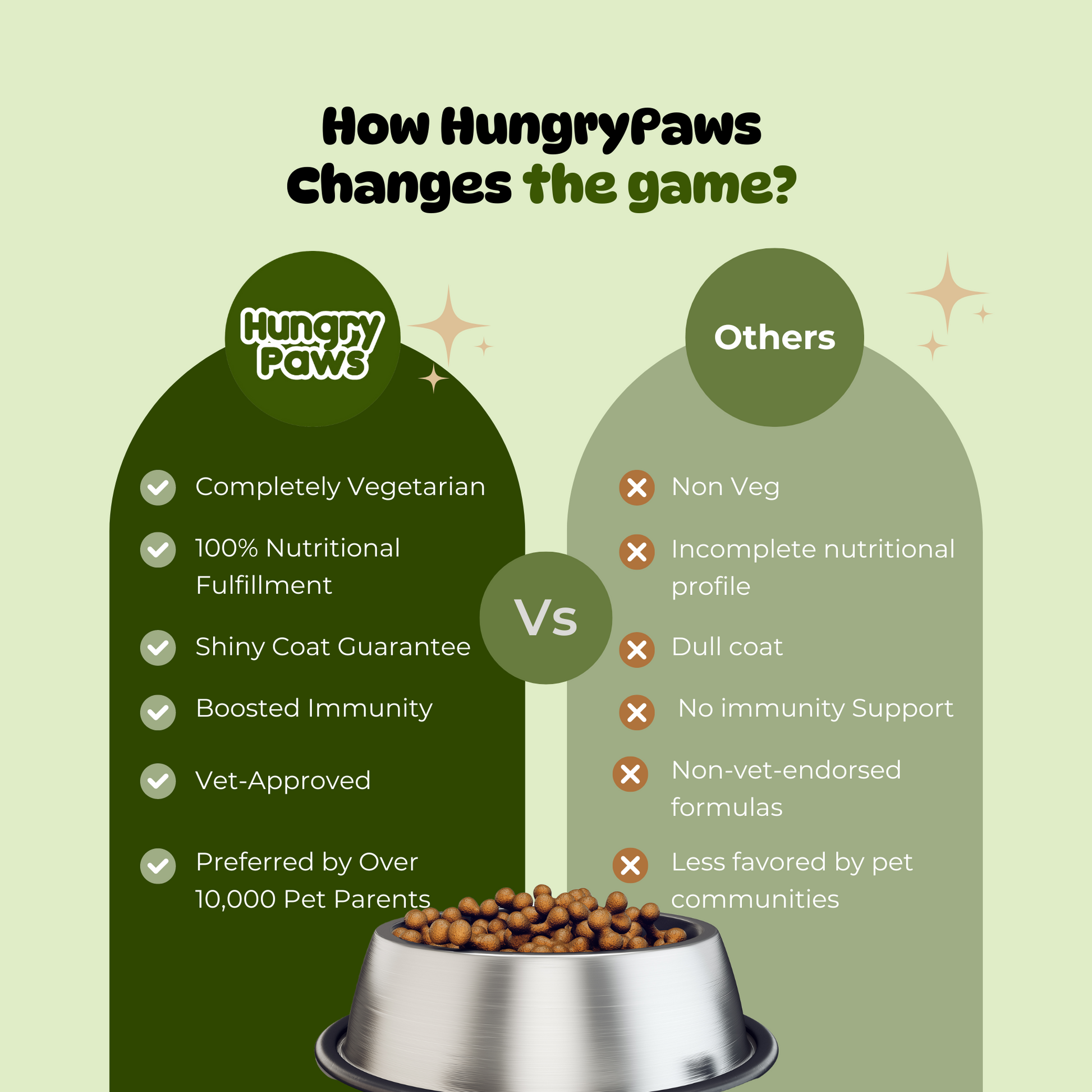 Hungrypaws provides all the nutrients your dog needs as a complete diet. However, if you prefer to combine it with other foods, you can use Hungrypaws as part of a mixed feeding plan. This approach allows you to gradually introduce plant-based nutrition while still incorporating other options if desired.